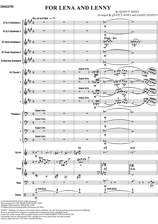 "For Lena and Lenny - Conductor's Score" Sheet Music by Quincy Jones