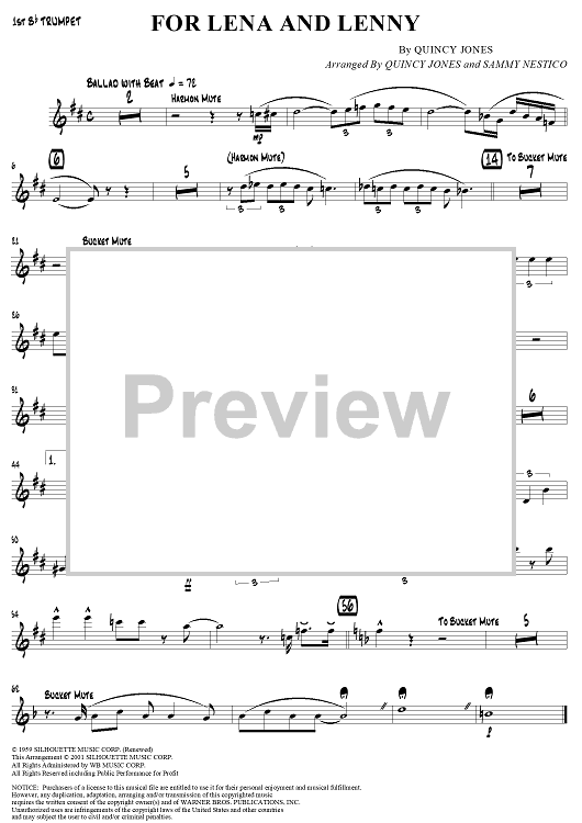 "For Lena and Lenny - Trumpet 1" Sheet Music by Quincy Jones