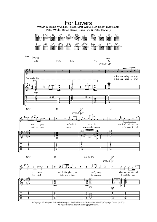 Digital Sheet Music for For Lovers by Pete Doherty, Julian Taylor, Peter Wolfe, Wolfman feat. Pete Doherty scored for Guitar Tab; id:380208