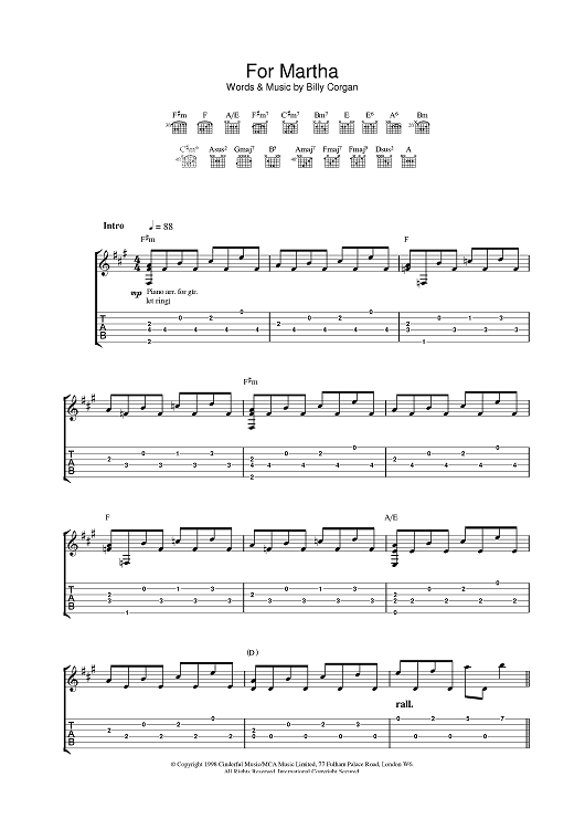 Digital Sheet Music for For Martha by Smashing Pumpkins scored for Guitar Tab; id:376750