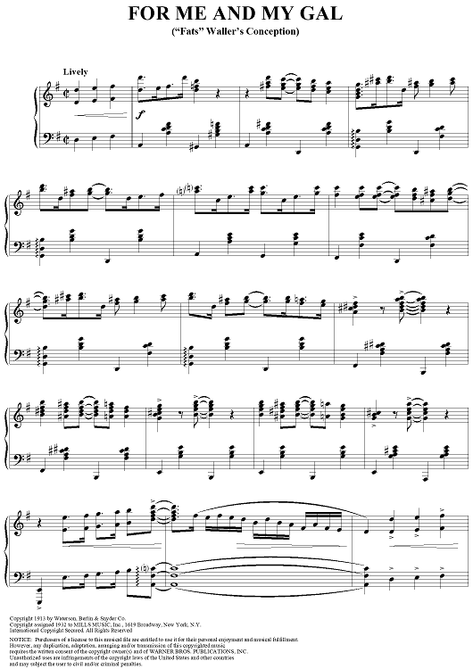 "For Me and My Gal (''Fats'' Waller's Conception)" Sheet Music by Fats Waller