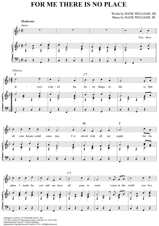 Digital Sheet Music for For Me There Is No Place by Hank Williams, Hank Williams, Jr. scored for Piano/Vocal/Chords; id:363746