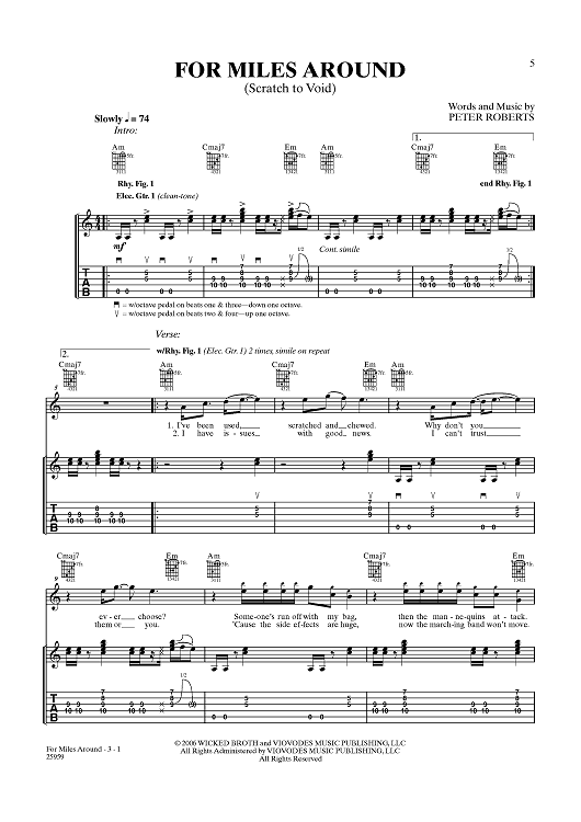 Digital Sheet Music for For Miles Around (Scratch to Void) by Peter Roberts, People In Planes scored for Guitar Tab/Vocal; id:356827