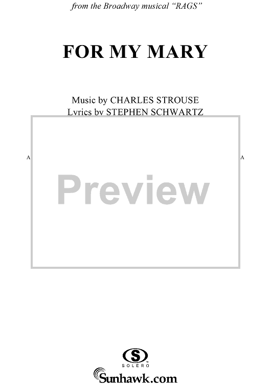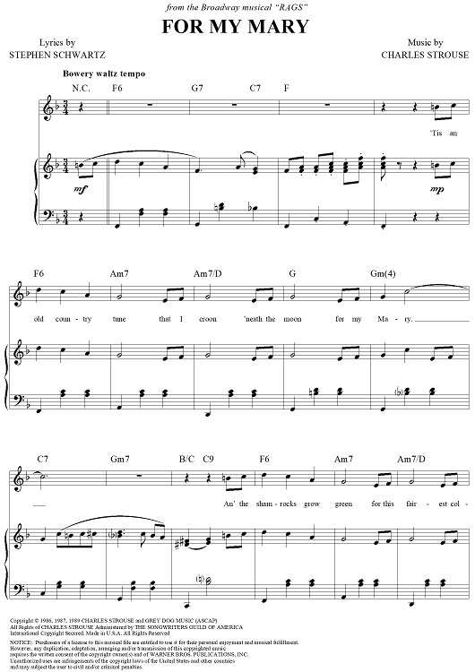 Digital Sheet Music for For My Mary by Charles Strouse, Stephen Schwartz scored for Piano/Vocal/Chords; id:235230
