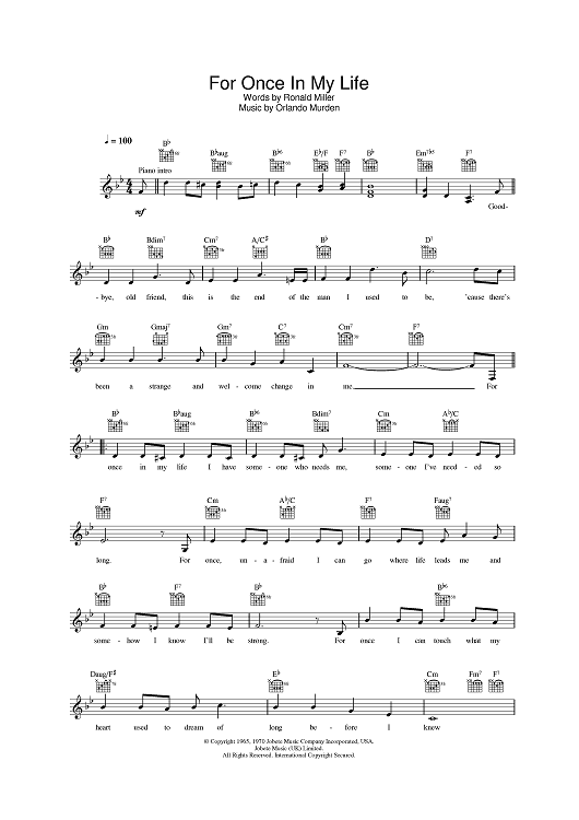 "For Once In My Life" Sheet Music by Stevie Wonder