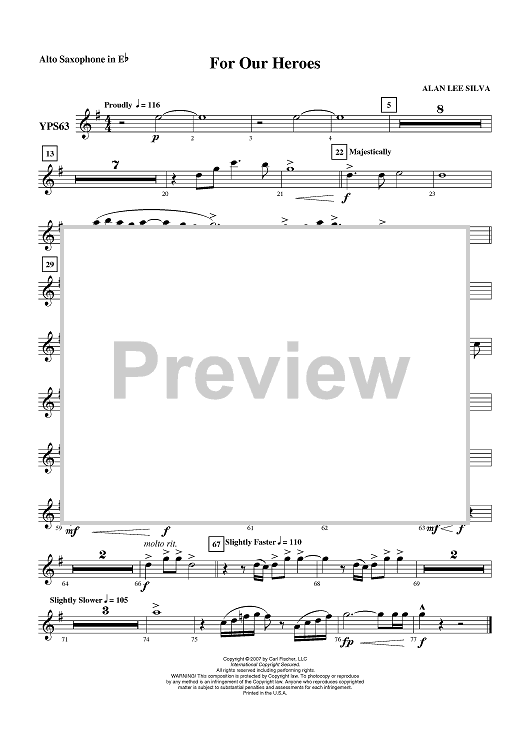 Digital Sheet Music for For Our Heroes - Alto Sax by Alan Lee Silva scored for Concert Band; id:407763
