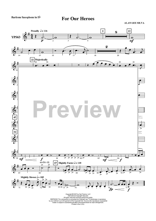 Digital Sheet Music for For Our Heroes - Baritone Sax by Alan Lee Silva scored for Concert Band; id:407765