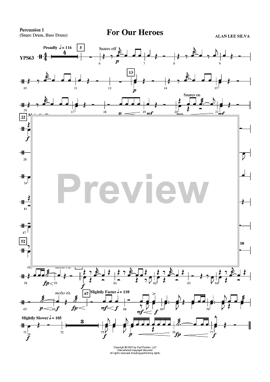 "For Our Heroes - Percussion 1" Sheet Music by Alan Lee Silva