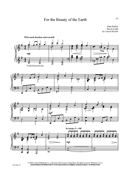 Digital Sheet Music for For the Beauty of the Earth by Conrad Kocher, John Purifoy scored for Piano Solo; id:433579