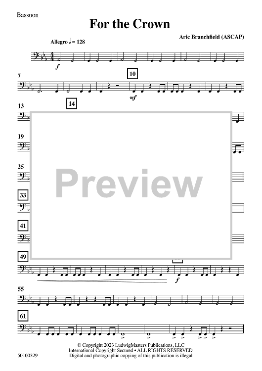 Digital Sheet Music for For the Crown - Bassoon by Aric Branchfield scored for Concert Band; id:510005