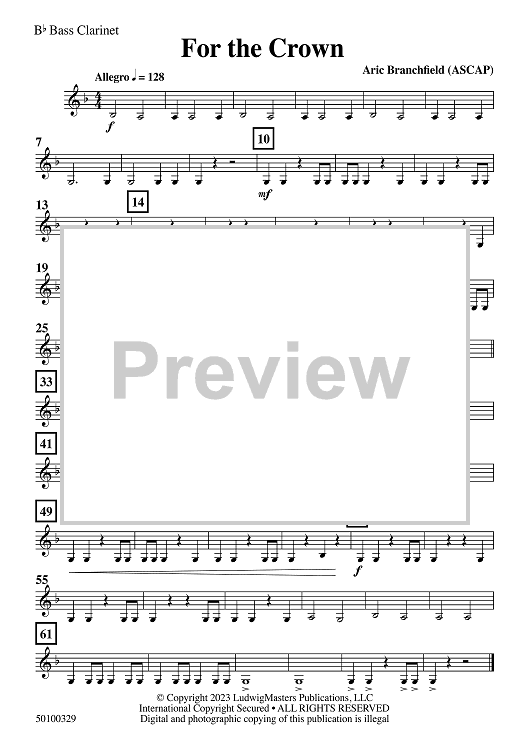 Digital Sheet Music for For the Crown - Bb Bass Clarinet by Aric Branchfield scored for Concert Band; id:510008