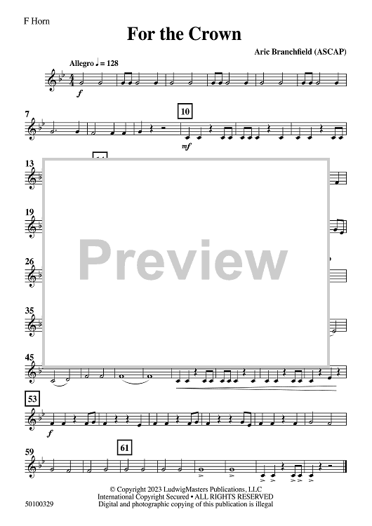 Digital Sheet Music for For the Crown - F Horn by Aric Branchfield scored for Concert Band; id:510015