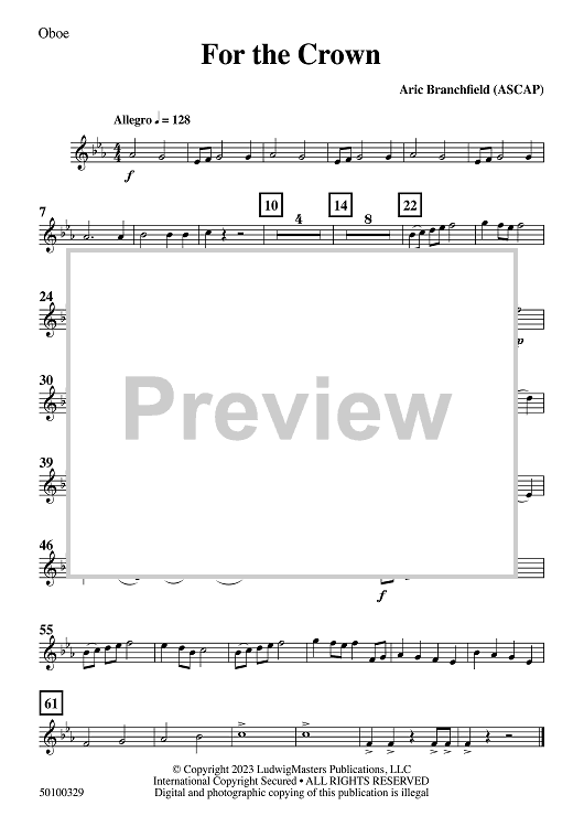 Digital Sheet Music for For the Crown - Oboe by Aric Branchfield scored for Concert Band; id:510004