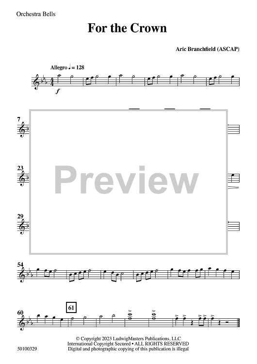 Digital Sheet Music for For the Crown - Orchestra Bells by Aric Branchfield scored for Concert Band; id:510022