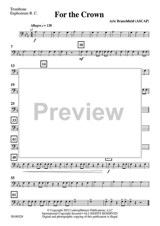 Digital Sheet Music for For the Crown - Trombone / Euphonium B.C. by Aric Branchfield scored for Concert Band; id:510016