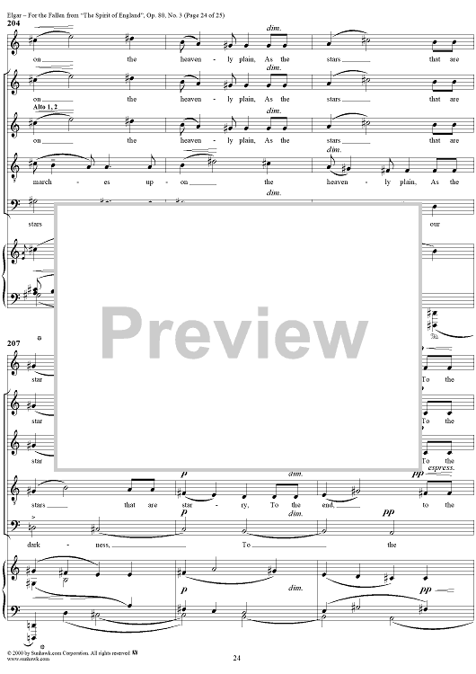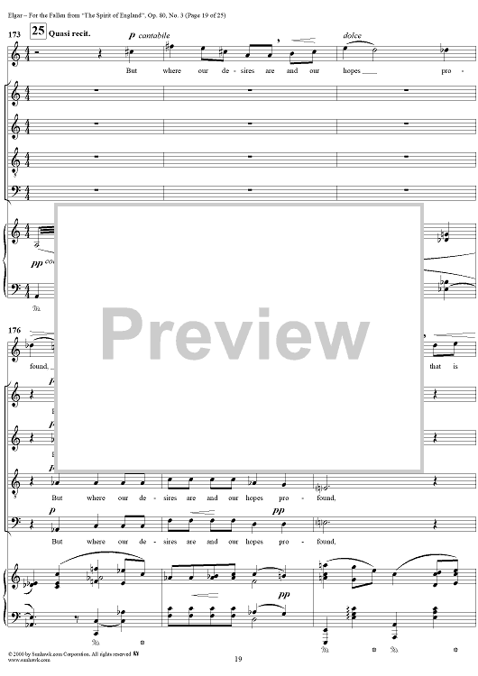 Digital Sheet Music for For the Fallen, from "The Spirit of England", Op. 80, No. 3 by Laurence Binyon, Edward Elgar scored for Soprano/SAATBB Chorus/Piano; id:270495