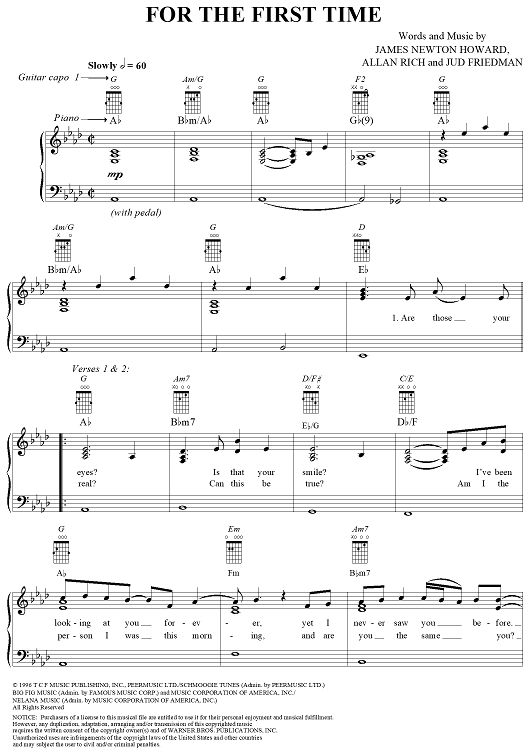 Digital Sheet Music for For The First Time by Steve Wariner, James Newton Howard, Allan Rich, Jud Friedman scored for Piano/Vocal/Chords; id:201408