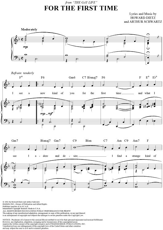 Digital Sheet Music for For the First Time by Howard Dietz, Arthur Schwartz scored for Piano/Vocal/Chords; id:315103