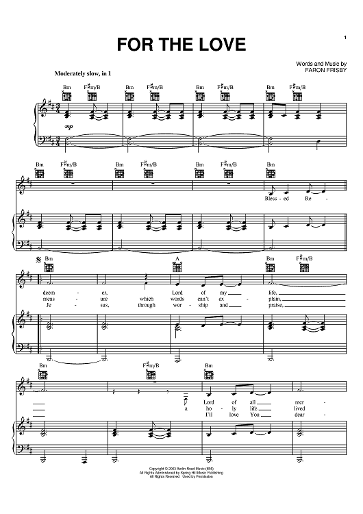 Digital Sheet Music for For The Love by Faron Frisby, The Martins scored for Piano/Vocal/Chords; id:380455