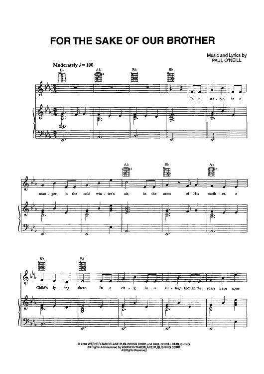 Digital Sheet Music for For The Sake Of Our Brother by Trans-Siberian Orchestra, Paul O'Neill scored for Piano/Vocal/Chords; id:465653