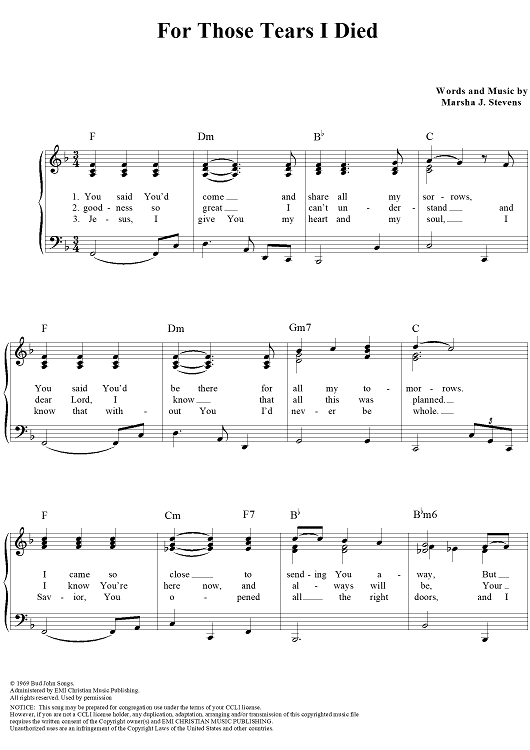 "For Those Tears I Died" Sheet Music by Marsha J. Stevens