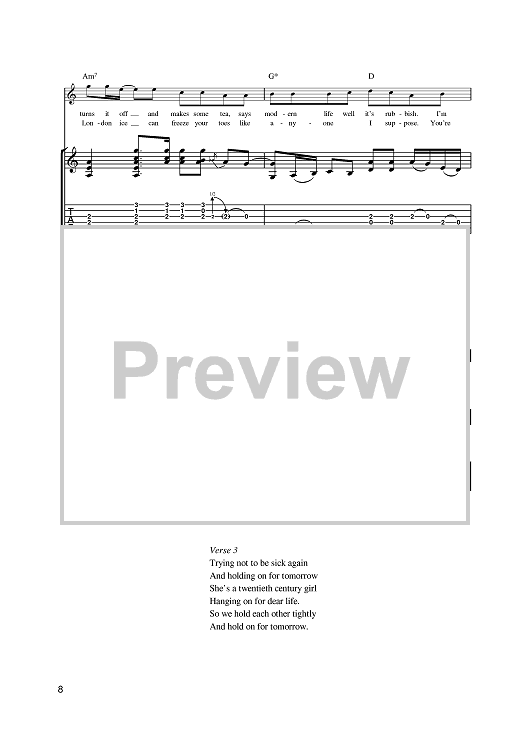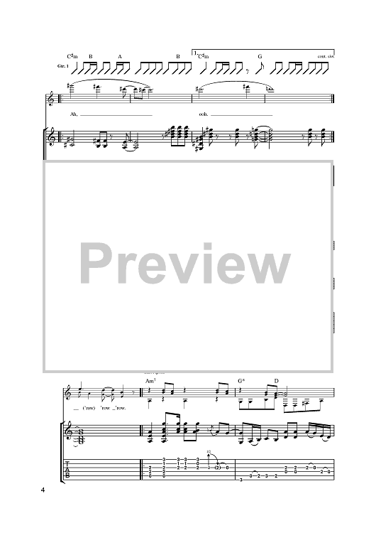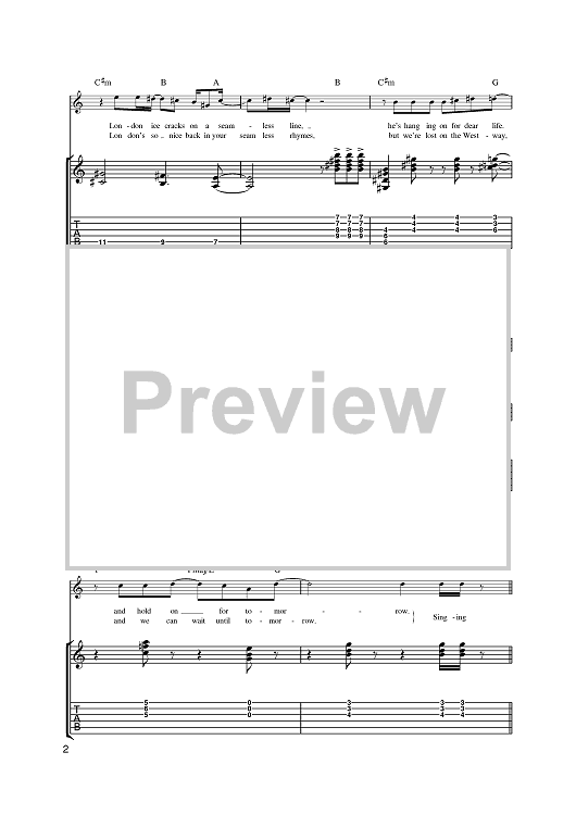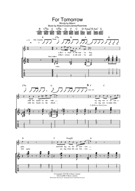Digital Sheet Music for For Tomorrow by Damon Albarn, Blur, Graham Coxon, Alex James, Dave Rowntree scored for Guitar Tab; id:393154