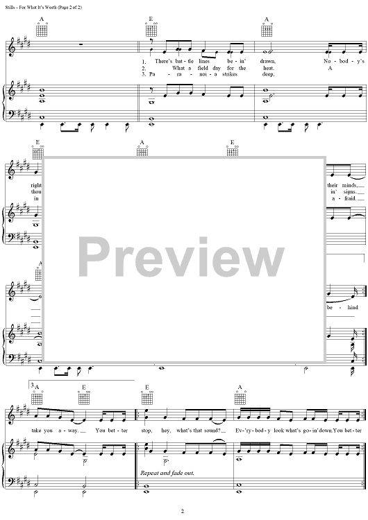 Digital Sheet Music for For What It's Worth by Buffalo Springfield, Stephen Stills scored for Piano/Vocal/Chords; id:110108