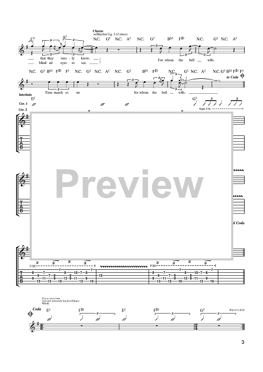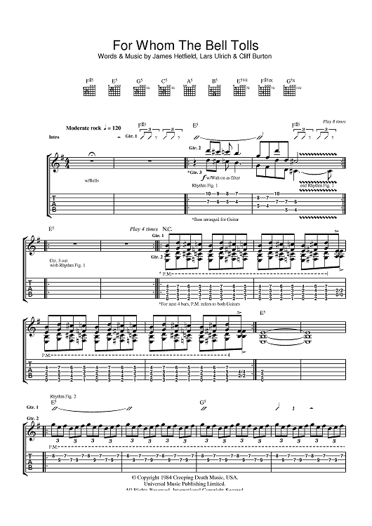 Digital Sheet Music for For Whom The Bell Tolls by Metallica, Cliff Burton, James Hetfield, Lars Ulrich scored for Guitar Tab; id:388322