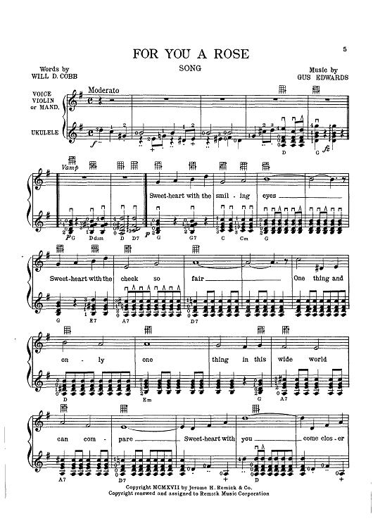 Digital Sheet Music for For You A Rose by , Gus Edwards, Will D. Cobb scored for Ukulele; id:418527