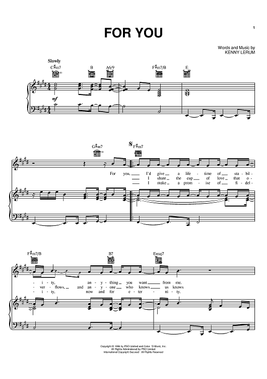 Digital Sheet Music for For You by Kenny Lerum scored for Piano/Vocal/Chords; id:369670