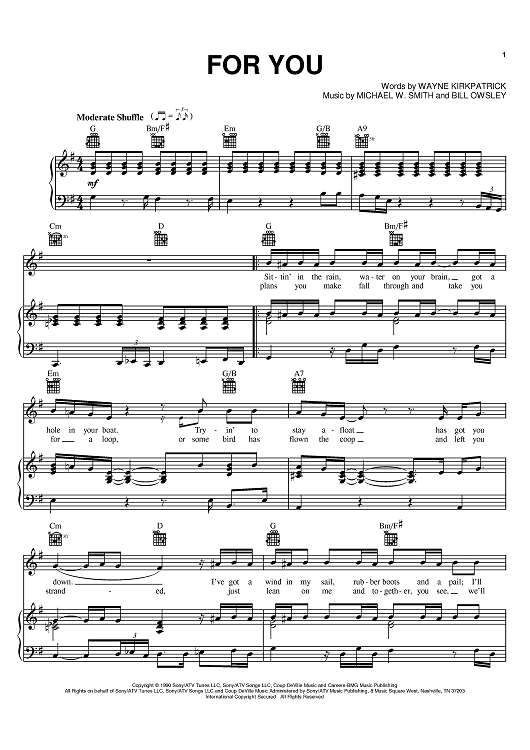 Digital Sheet Music for For You by Michael W. Smith, Wayne Kirkpatrick, William Owsley III scored for Piano/Vocal/Chords; id:395080