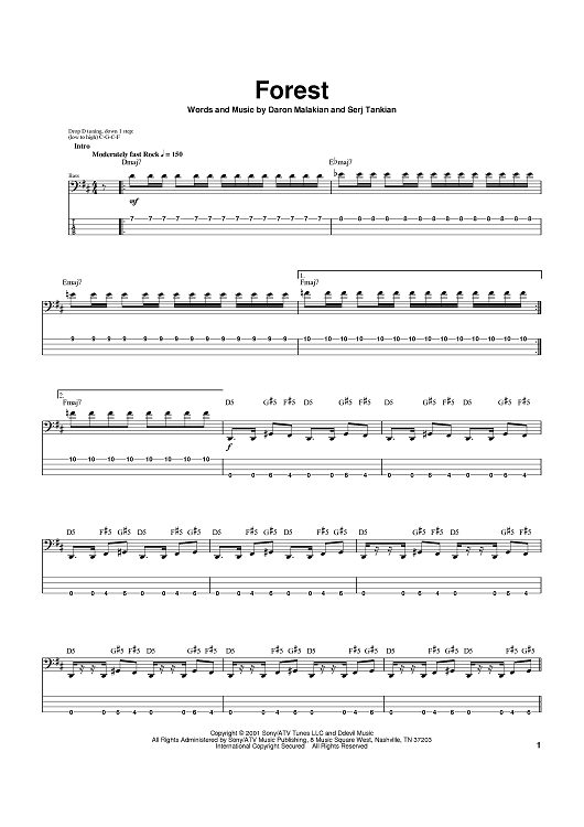 Digital Sheet Music for Forest by Daron Malakian, System Of A Down, Serj Tankian scored for Bass Tab; id:370427