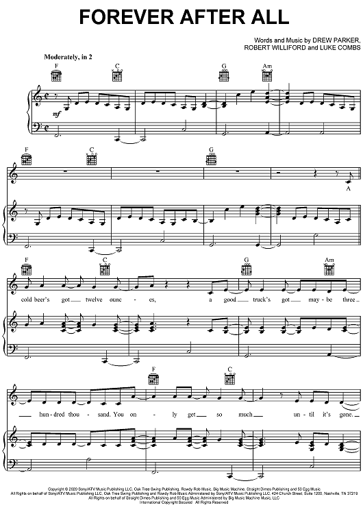 Digital Sheet Music for Forever After All by Luke Combs, Drew Parker, Robert Williford scored for Piano/Vocal/Chords; id:468732