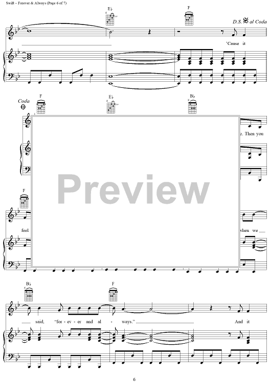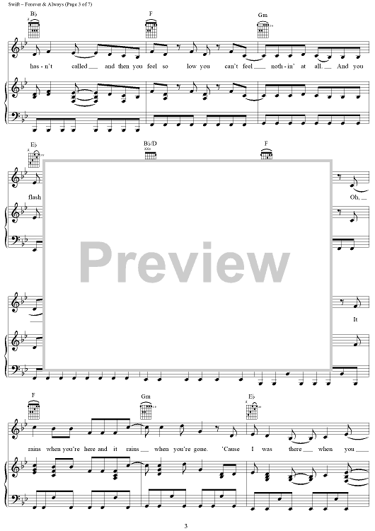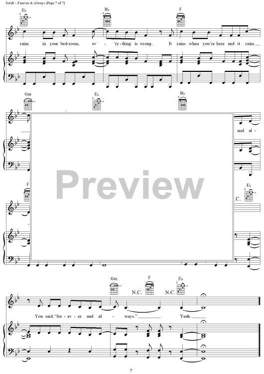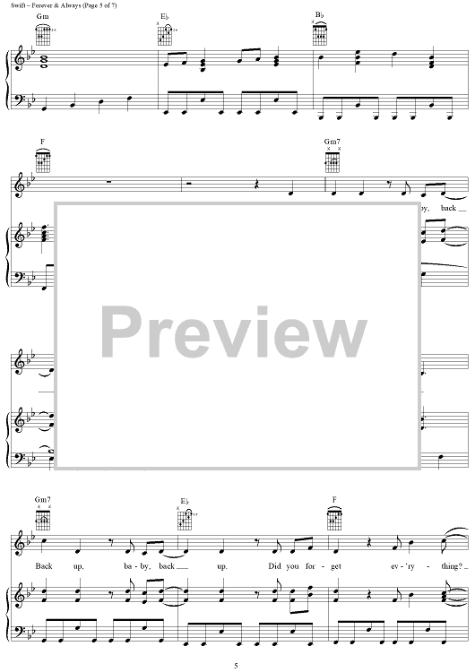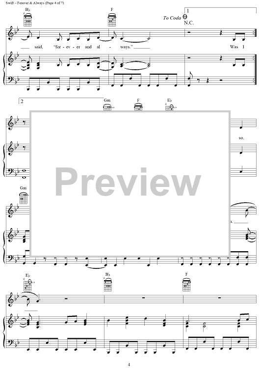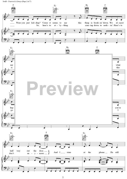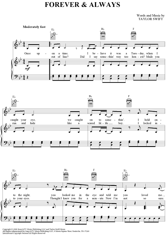 Digital Sheet Music for Forever & Always by Taylor Swift scored for Piano/Vocal/Chords; id:408516