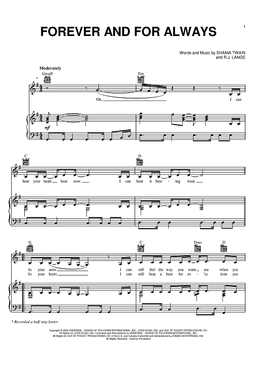 Digital Sheet Music for Forever And For Always by Shania Twain, Robert Lange scored for Piano/Vocal/Chords; id:381427
