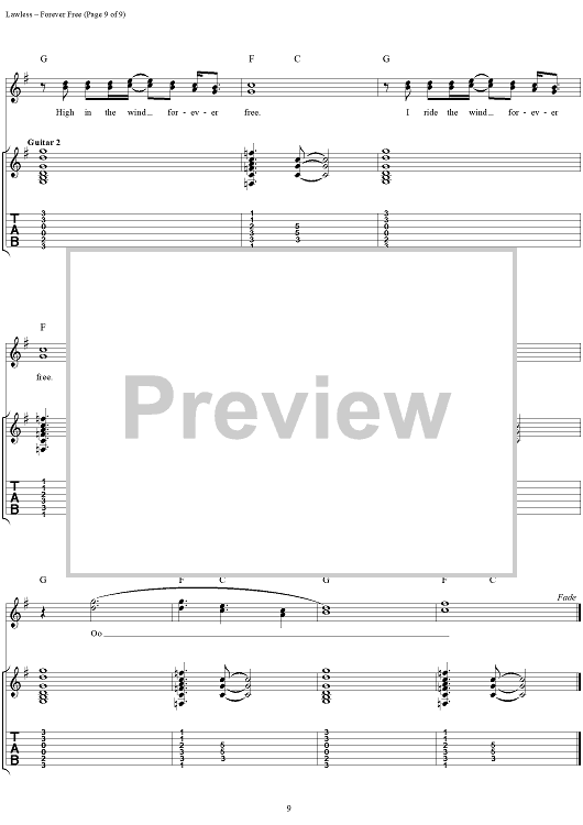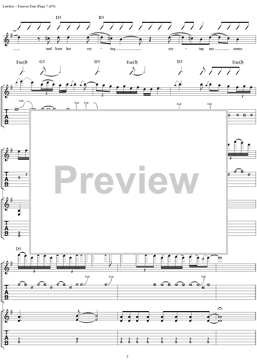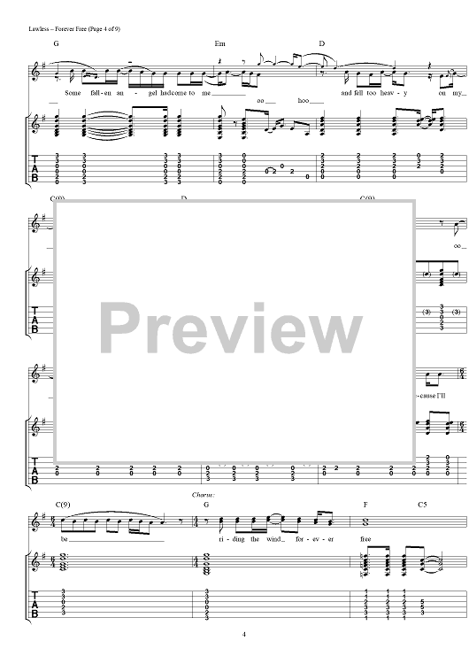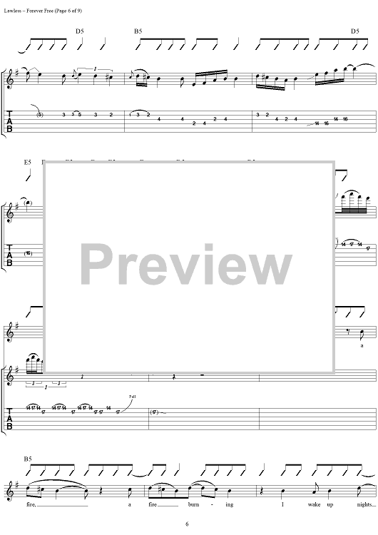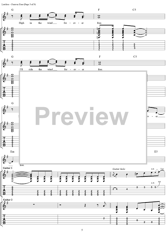 Digital Sheet Music for Forever Free by Blackie Lawless, W.A.S.P. scored for Guitar Tab/Vocal; id:250224