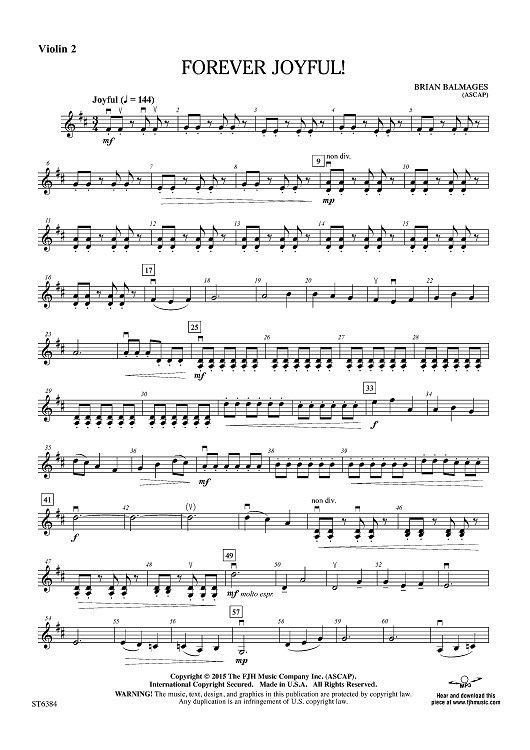 Digital Sheet Music for Forever Joyful! - Violin 2 by Brian Balmages scored for Orchestra; id:456221