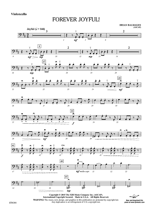 "Forever Joyful! - Violoncello" Sheet Music by Brian Balmages