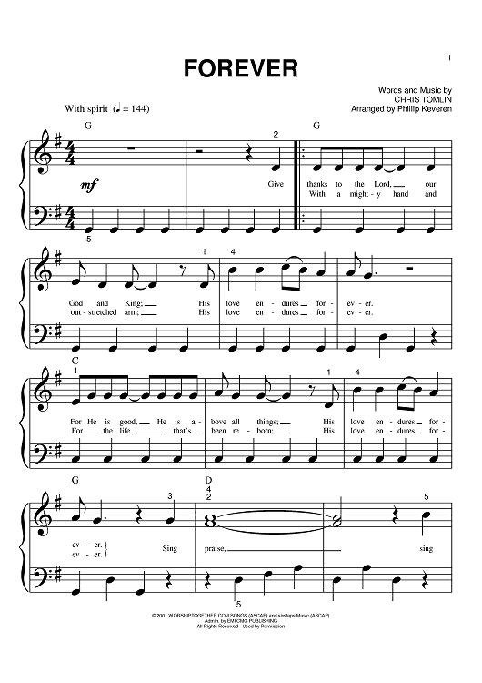 Digital Sheet Music for Forever by Rebecca St. James, Chris Tomlin, Phillip Keveren scored for Big Note Piano; id:396891