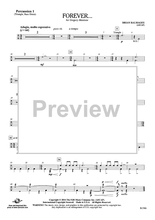 Digital Sheet Music for Forever… - Percussion 1 by Brian Balmages scored for Concert Band; id:445830