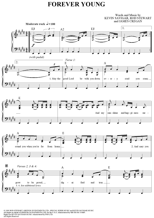 Digital Sheet Music for Forever Young by Rod Stewart, Kevin Savigar, Jim Cregan scored for Piano/Vocal/Chords; id:286198