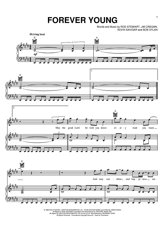 Digital Sheet Music for Forever Young by Rod Stewart, Kevin Savigar, Jim Cregan scored for Piano/Vocal/Chords; id:371508