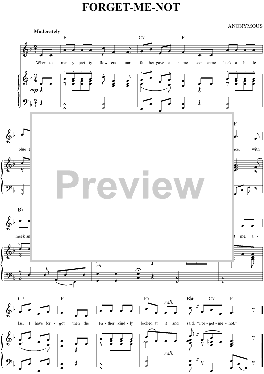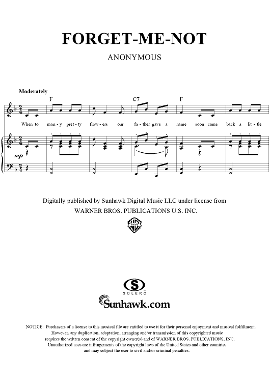 Digital Sheet Music for Forget Me Not by Unknown Writer scored for Piano/Vocal/Chords; id:277402