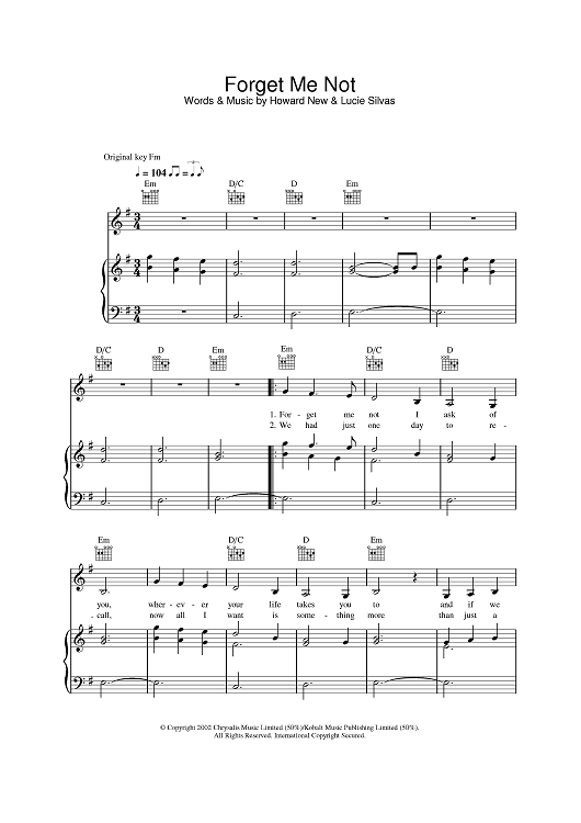 Digital Sheet Music for Forget Me Not by Howard New, Lucie Silvas scored for Piano/Vocal/Chords; id:381667