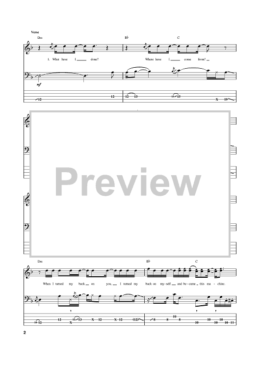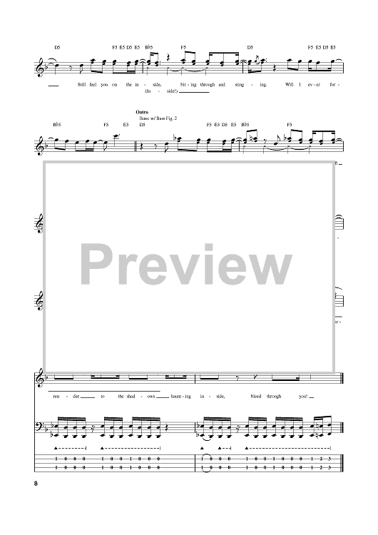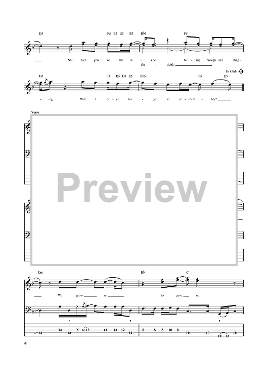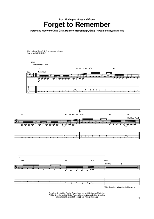 Digital Sheet Music for Forget To Remember by Matthew McDonough, Gurrg, Ry-Know, Chad Gray, Mudvayne scored for Bass Tab; id:387591