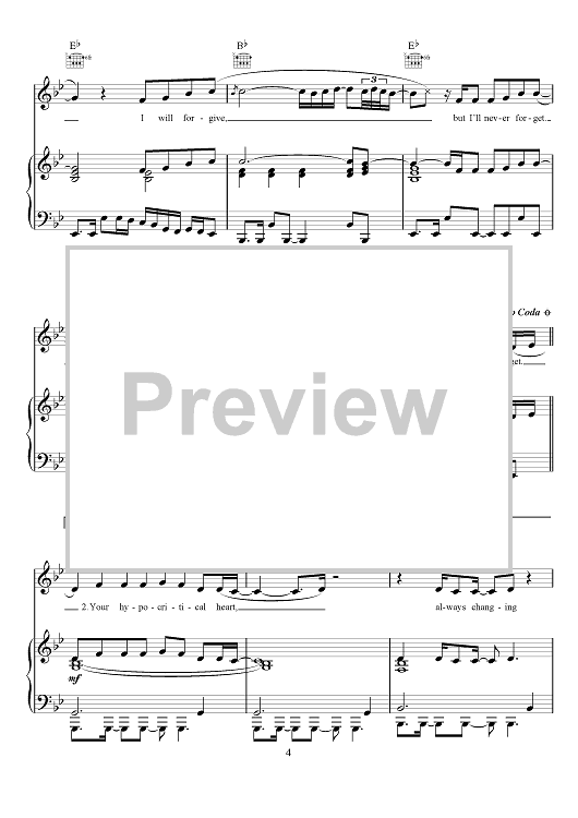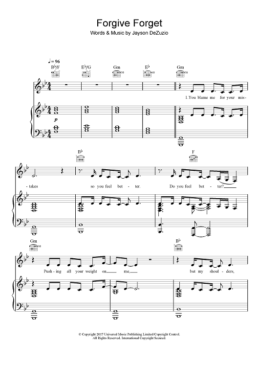 Digital Sheet Music for Forgive Forget by Jayson DeZuzio, Samantha Harvey scored for Piano/Vocal/Chords; id:465434