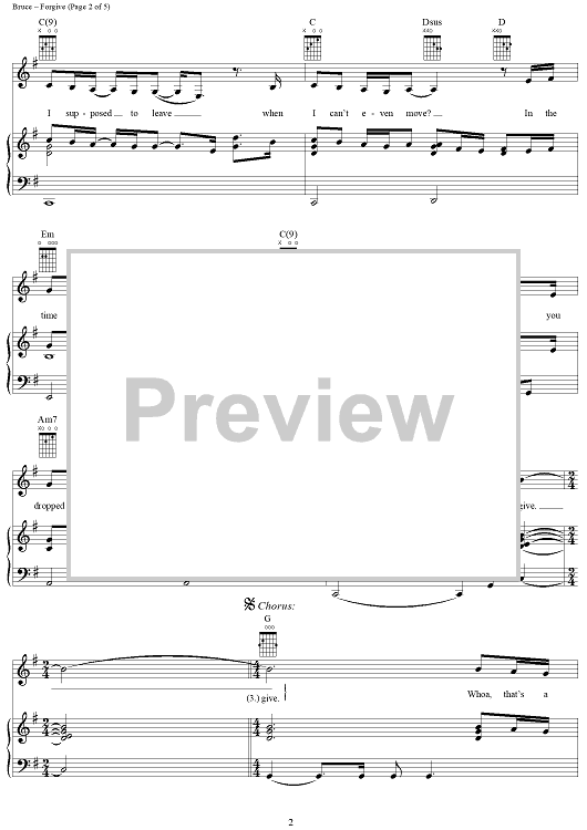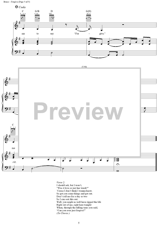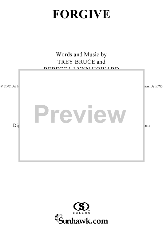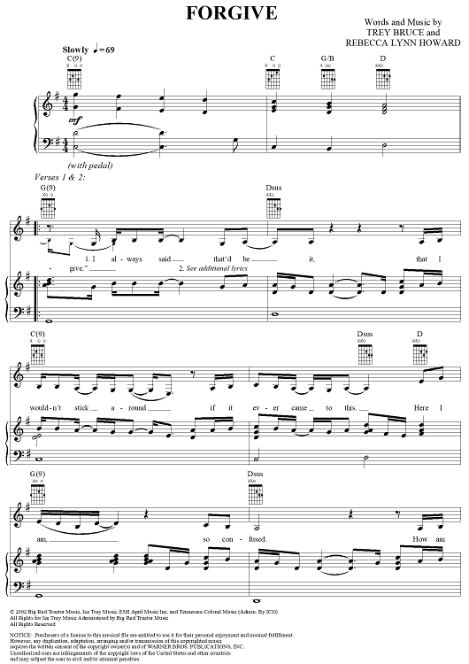 Digital Sheet Music for Forgive by Trey Bruce, Rebecca Lynn Howard scored for Piano/Vocal/Chords; id:293635