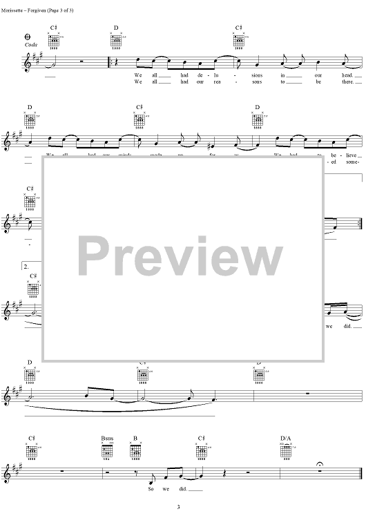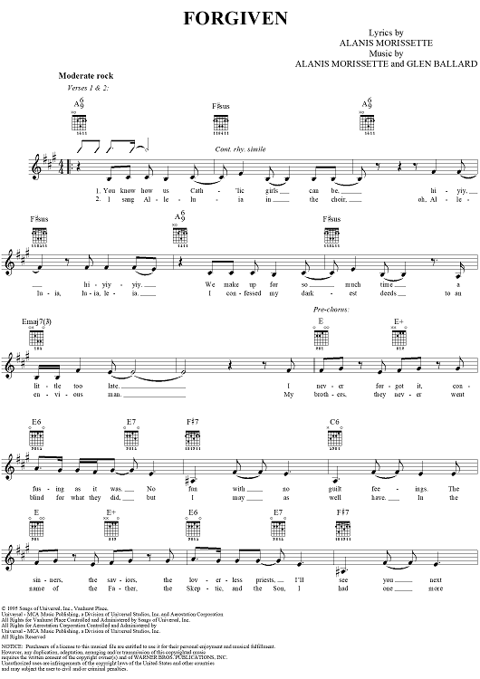 Digital Sheet Music for Forgiven by Glen Ballard, Alanis Morissette scored for Easy Guitar/Chords; id:285792