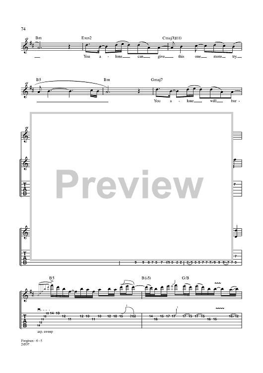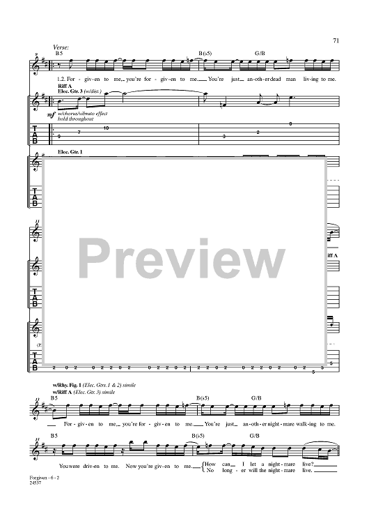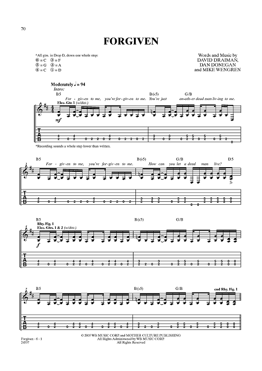 Digital Sheet Music for Forgiven by Disturbed, Mike Wengren, Dan Donegan, David Draiman scored for Guitar Tab/Vocal; id:357798