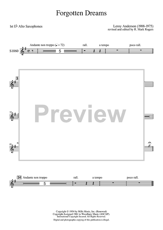 Digital Sheet Music for Forgotten Dreams - 1st Eb Alto Saxophones by Leroy Anderson, R. Mark Rogers scored for Symphonic Band; id:507433